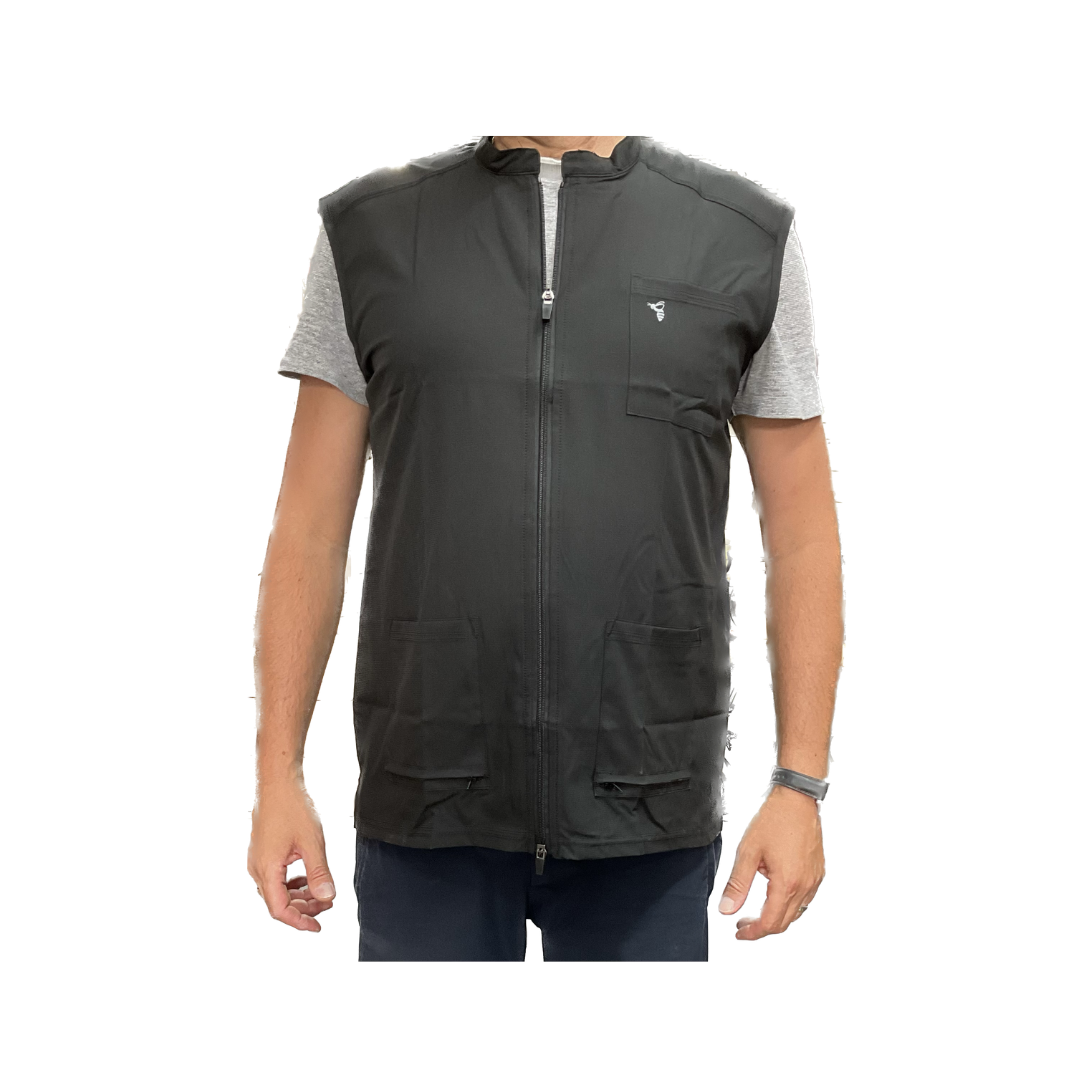 This Barber Vest is made of NanoShield™ material that repels hair and offers mesh side panels for superior breathability along with lightweight fabric for maximum comfort and mobility. Its 2-way zipper and sleeveless design also improve air circulation where it is most needed. The front pockets feature a hair removal system for easy cleaning.