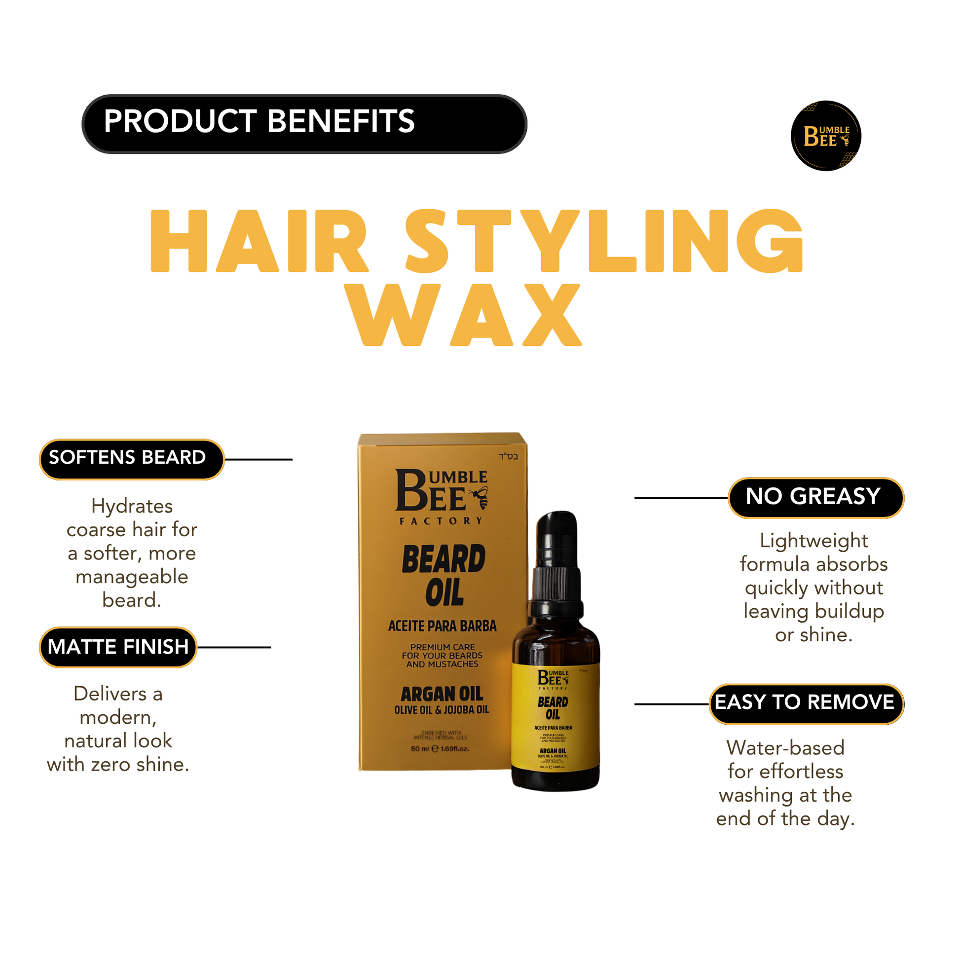 Indulge your beard in the luxurious care it deserves with BUMBLE BEE Beard Oil. Our premium blend is meticulously crafted to transform your beard and mustache into a masterpiece of grooming excellence. Enriched with organic Argan Oil, Olive Oil, and Jojoba Oil, this beard oil is a harmonious fusion of nature's finest ingredients, providing deep nourishment and a touch of organic indulgence.