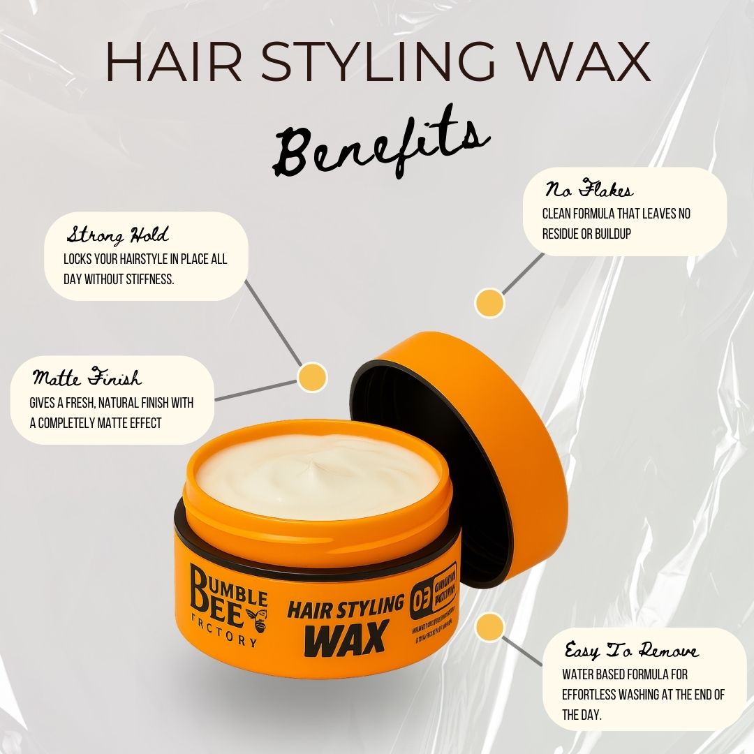 Discover the power of style with the exciting new lineup of Bumble Bee Hair Styling Wax. With four unique styles to choose from, each wax offers an exclusive formula designed to meet the needs of modern men seeking impeccable, long-lasting looks. From the luxurious 'Múltiples Million' to the bold 'Matte Boom', each product delivers a firm hold and natural finish that allows you to sculpt and define your hair with ease. Infused with high-quality ingredients and refreshing fragrances, our waxes not only help you achieve the perfect hairstyle, but also care for your hair, leaving it looking healthy and radiant. Whether you're aiming for a sleek, sophisticated look or a daring, cutting-edge style, Bumble Bee's Hair Styling Wax lineup has everything you need to express your unique style and stand out from the crowd. Elevate your style game with Bumble Bee and make a bold statement with your hair wherever you go. With our waxes, the power of style is in your hands.