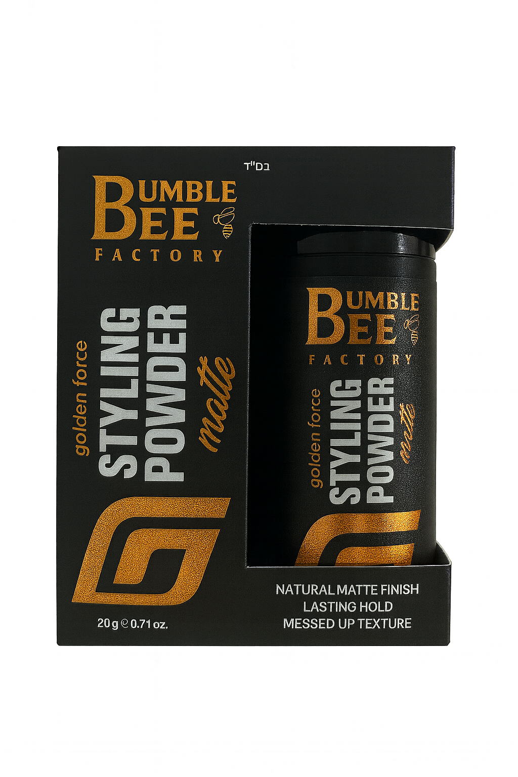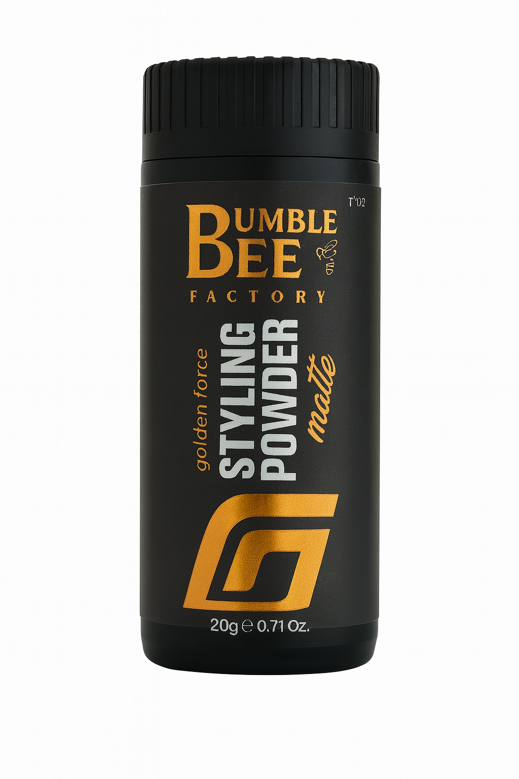 Take your hairstyle to the next level with Bumble Bee Factory’s Golden Force Styling Powder Matte. This lightweight powder delivers a natural matte finish with a strong, lasting hold. Perfect for achieving a textured, “messed-up” look, it adds instant volume and control without weighing hair down. Ideal for everyday styling or bold, modern looks that stay fresh all day.